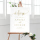 Bienvenido a su boda con este original cartel de bienvenida boda. Presenta un guión elegante y una tipografía simple. Personalice agregando nombres y mensajes de agradecimiento. Este cartel de bienvenida boda será perfecto para cualquier tema boda y temporada.