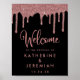 Póster Bienvenida a Boda de Purpurina de Rosa negro con g