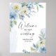 Póster Bienvenida a Boda Floral Azul y Blanca