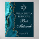 El bar Mitzvah, un poster de bienvenida personalizado, está decorado con agate de moda verde azulado y oro. El nombre de su hija está escrito en un hermoso guión formal bajo la Estrella de David. Perfecto para una moda, elegante familia judía celebrando la llamada de su chica a la Torá.