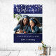 Un poster de bienvenida para la fiesta de cumpleaños con fotos. Personalice y agregue un nombre y una edad. Fondo azul marino, texto blanco. El color azul es desigual. Decorada con estrellas falsas de plata.