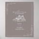 Trato boda con ilustracion rústico de granero sobre un fondo de color gris amatista.