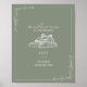 Trato boda con ilustracion rústico de granero sobre el fondo de Sage Green.
