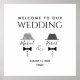 Da la bienvenida a tus invitados con estilo utilizando este elegante cartel de boda gay, que presenta a dos novios ilustrados con clásicos sombreros y corbatas negras y blancas. Personalizado con sus nombres, fecha y ubicación, este letrero minimalista establece un tono cálido y moderno para su celebración. Ideal para entradas de ceremonias, salas de recepción o fondos para cabinas de fotos. Un toque final perfecto para bodas formales, LGBTQ+ o con tema en blanco y negro.