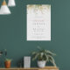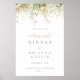 Este poster de bienvenida, que sirve como marco para un ensayo de boda rústico, es perfecto para una cena de boho. El diseño se compone de flores acuáticas rosas, rubias, amarillas y blancas, dispuestas en elegantes ramos.