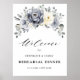 Póster de bienvenida a la cena de ensayo floral de invierno elegante cuenta con un ramo de flores de acuarela gris elegante, marfil y plata, follaje de tonos helados. Por favor, contácteme para cualquier ayuda en personalización o si necesita cualquier otro producto con este diseño.