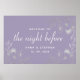 Este elegante y vintage poster le dará la bienvenida en una velada especial. Con un diseño púrpura de lavanda boho con flores plateadas rústicas y escritura moderna de caligrafía, esta hermosa pieza añade un toque de encanto y sofisticación a su celebración del 'Día anterior'.