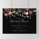 Este ensayo multicolor para la cena es perfecto para un ensayo boda moderno. El diseño se compone de una variedad multicolor de flores rosadas, ruidosas, violetas, violetas, violetas, violetas, borgoñas y salvajes en un fondo negro.