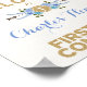 Magnífico cartel de bienvenida con temática bohemia en la Sagrada Comunión con una elegante acuarela de ensueño floral en azul y oro
