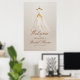 Da la bienvenida a tus invitados con este cartel de despedida de soltera asequible, que presenta un romántico vestido de novia de acuarela con acentos dorados y fuentes de escritura elegantes. Esta versión es ideal para enmarcar o pegar en la pared para una exhibición elegante y económica. Diseñado para coincidir con la colección de Despedida de Soltera de Otoño, este cartel se puede personalizar con el nombre de la novia y la fecha del evento. Una forma encantadora de establecer el tono para una celebración memorable.