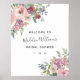 Hermoso cartel de bienvenida a la despedida de soltera con rosas polvorientas, hortensias, eucalipto y otras plantas realizado con pinturas acuarelas. La tipografía bonita añade al estilo encantador. Ver artículos coordinados en nuestra tienda, Enchanted Finch.