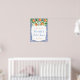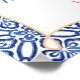 Naranjas de acuarela y hermosas flores sobre un fondo de patrón de azulejos de azul cobalto y blanco para este elegante cartel de bienvenida de ducha de novia o de bebé.