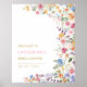 Este elegante cartel de bienvenida le dará un toque de alegría a su evento. El diseño está decorado con alegres acuarelas y flores silvestres mezcladas con vegetación exuberante. Utilice los campos de texto para personalizar la tarjeta con su propio texto y detalles. El color de fondo de la invitación está establecido en blanco, pero no dude en elegir un nuevo color de relleno para que coincida con el tema boda. Si desea cambiar el estilo de letra, color o ubicación del texto, simplemente haga clic en el botón "Personalizar más adelante".