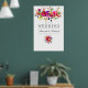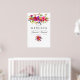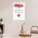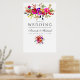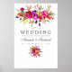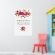 Poster de bienvenida color acuático boda floral con flores violetas, burdeos y rojas con un toque de oro y purpurina de oro rosa.
