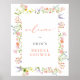 Un poster de bienvenida con una ducha de flores de color pastel con flores de color acuático rodeado de un marco blanco. "bienvenido" es en el tipo de letra de coral moderno caligrafía. También disponible para descargar en casa.