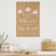 Perfecto para dar la bienvenida a amigos y familiares a una celebración especial de la bebé, ducha o ducha de parejas. Con nubes rosadas y estrellas doradas en hilos sobre un fondo rústico kraft boho, este bonito letrero de bienvenida es perfecto para todas las pequeñas bebés que están en camino. Diseñado por Thisisnotme©