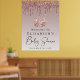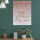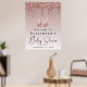 Póster de bienvenida personalizado y glamuroso para tu baby shower con brillo dorado rosa falso que cae sobre un fondo dorado rosa ombre, una ilustración de pies de bebé en brillo dorado rosa y "Baby Shower" en una tipografía elegante. Personaliza con tu nombre y fecha de la fiesta.