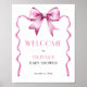 Cartel de bienvenida para fiesta de bebé vintage con lazo de cinta rosa acuarela. Artículos a juego disponibles.