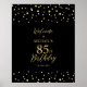 Bienvenido a sus invitados a un día especial de celebración con este elegante cartel de bienvenida dorado y negro. Este cartel presenta tipografía moderna" Bienvenidos a los 85 años" y un diseño de confeti hexagonal. Puede personalizar el nombre y la fecha. En mi tienda BaraBomDesign hay disponibles invitaciones y suministros para fiestas coincidentes.
