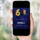 Un poster de bienvenida para una fiesta de cumpleaños número 60. Un fondo de color azul marino desigual. Personalice y agregue un nombre y una foto.