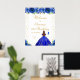 Este elegante y glamuroso cartel de bienvenida para la fiesta de cumpleaños presenta a una bella princesa con el pelo rojo marrón y la piel clara en un vestido de bolas azul real. El texto combina el guión manuscrito y las fuentes sans serif modernas para un aspecto elegante y sofisticado. Los arreglos florales, las mariposas y los confeti dorados crean una perfecta mezcla de rústico y moda. Gráficos de www.etsy.com/uk/shop/SunflowerDayLove