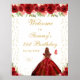 Este elegante y glamuroso cartel de bienvenida para la fiesta de cumpleaños incluye una hermosa princesa con el pelo rojo pardo y piel clara en un vestido de bola roja. El texto combina el guión manuscrito y las fuentes sans serif modernas para un aspecto elegante y sofisticado. Los arreglos florales, las mariposas y los confeti dorados crean una perfecta mezcla de rústico y moda. Gráficos de www.etsy.com/uk/shop/SunflowerDayLove