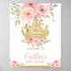 Hermoso cartel / pancarta de bienvenida para baby shower con tema de té floral rosa con toque dorado, que incluye una tetera con brillo dorado y hermosas flores de acuarela rosadas y con rubor. Personalízalo con tus datos de manera fácil y rápida, simplemente presiona el botón de personalizar para reorganizar y dar formato al estilo y ubicación del texto. Elige entre tamaños desde pequeño hasta extra grande. Utiliza carteles de tamaño pequeño como señales de bienvenida, ideales enmarcados y colocados en la mesa del festejo. Utiliza carteles de tamaño grande como pancarta de bienvenida o decoración de fondo de bienvenida. Diseñado para coordinar con nuestra colección de baby shower con tema de té floral rosa. ¡Artículos coincidentes disponibles en la tienda! (c) The Happy Cat Studio