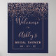 Bienvenida a la fiesta de despedida de soltera en rosa oro con confeti y azul marino