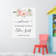 Las elegantes peonías rosadas están envueltas en hojas verdes. Bienvenida está escrita en una fuente de escritura de moda. El nombre de la novia también está en una fuente de escritura popular. El texto abierto y aireado complementa la suave paleta floral. Esta señal de bienvenida para la fiesta de la novia es parte de la colección Rustic Pink Peony.