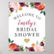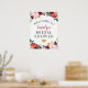 La bienvenida a la fiesta de despedida de soltera / cartel de bienvenida presenta un texto elegante enmarcado por una hermosa corona rústica de flores de acuarela de otoño, incluyendo rosas, dalias, flores de peonía y follaje, en una hermosa paleta de verano u otoño de rojo borgoña, amarillo dorado, naranja melocotón, rosa sonrojado y tonos de verde. Incluye un acento de corazón dorado. Personaliza con el nombre de la novia en escritura borgoña roja.