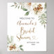 Cartel de bienvenida a la fiesta de desposadas floral blanca de invierno