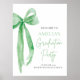 🎓 Moderna fiesta de graduación 🎀 Green Bow Coquette Poster de bienvenida 🎓 Bienvenidos a la moda y al estilo elegante con este Poster de bienvenida de la moderna fiesta de graduación de Bow Green. Con una suave proa verde y una sofisticada tipografía, este diseño le da un toque fresco y elegante a su celebración. Perfecto para graduados de secundaria o universitarios, este cartel de bienvenida inspirado en la coqueta crea una impresionante exhibición de entrada para una memorable fiesta de graduación. ¡Celebra con estilo este diseño atemporal y elegante! 💚 ✨
