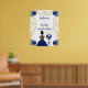 Este dulce cartel de bienvenida consta de un marco dorado elegante, una bella princesa de piel oscura y un vestido azul marino, flores y un globo. Es perfecto para una dulce fiesta de 16 años.