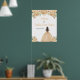 Este dulce cartel de bienvenida consta de flores florales de color crema de melocotón purpurina y una hermosa princesa con pelo castaño y un vestido elegante. Es perfecto para una dulce fiesta de 16 años.