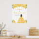 Este dulce cartel de bienvenida de dieciséis años tiene flores florales de oro purpurina falsas y una hermosa princesa con pelo castaño y un vestido elegante. Es perfecto para una dulce fiesta de 16 años.