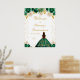 Este elegante y glamuroso cartel de bienvenida de la fiesta de cumpleaños de Quinceañera presenta a una hermosa princesa con el pelo oscuro en un vestido de tiara y bolas verdes. El texto combina el guión manuscrito y las fuentes sans serif modernas para un aspecto elegante y sofisticado. Los arreglos florales, las mariposas y los confeti dorados crean una perfecta mezcla de rústico y moda. Gráficos de www.etsy.com/uk/shop/SunflowerDayLove