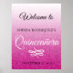 El lujoso purpurina de color rosa intenso Quinceañera 15th Birthday, con caligrafía de guion de moda y tipografía moderna. Añade tu nombre a este poster de bienvenida purpurina quinceañera, de color rosa brillante. Diseñado exclusivamente para usted por Happy Dolphin Studio. Si necesita ayuda o productos coincidentes, por favor contáctenos en happydolphinstudio@outlook.com.