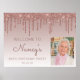 Bienvenidos a esta moda, glamurosa foto de la fiesta de cumpleaños número 80, con un brillante borde de goteo de purpurina dorado rosa y un subió fondo sombrío de color dorado. Reemplace fácilmente la imagen de muestra con una foto del invitado de honor. Personalízalo con su nombre en escritura a mano rosa, con el cumpleaños y la fecha a continuación en el tipo de letra rosa sans serif.