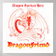 Impresionante poster de una dama atrevida y hermosa con su amigo dragón. Tinta roja vibrante sobre un fondo blanco oscuro con letras de colores feroces que declaran que la dama es amiga de todos los dragones.