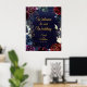 Un conjunto de peonías rojas, violetas y azul marino profundas adornadas con brillantes contornos de oro contra un oscuro y rico lienzo acuático azul marino con trampas de oro marca el tono para esta espléndida invitación a la boda. Un guión animado en oro anuncia tus detalles e invita a tus invitados a tu boda.