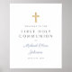 Poster de bienvenida de primera comunión de un niño azul y polvoriento religioso