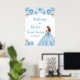Este dulce cartel de bienvenida de dieciséis años cuenta con una bella princesa en un vestido de bola azul con arreglos florales. Es perfecto para una dulce fiesta de 16 años.