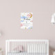 Este diseño es un impresionante ejemplo de belleza etérea. El uso de la acuarela crea un efecto suave y soñador, con nubes agitadas en tonos azules y rosas que evocan una sensación de asombro y magia. La brillante luna y las estrellas agregan un toque de brillo y encanto, haciendo que sea perfecto para una celebración de revelación de género. La caligrafía utilizada para el mensaje de "Bienvenida" es elegante y elegante, con líneas fluidas que le dan al diseño un sentido de sofisticación y refinamiento. En general, este poster es una forma preciosa y memorable de recibir a los huéspedes en su evento especial, con su delicada mezcla de color, textura y humor. Los elementos coincidentes están disponibles.