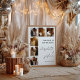 Este moderno cartel de bienvenida de 6 fotos es la manera perfecta de recibir a los huéspedes con estilo. Con un diseño limpio y una tipografía minimalista, resalta tus momentos de compromiso favoritos mientras mantienes el foco en tu historia de amor. Ideal para lugares elegantes, bodas al aire libre o micro ceremonias. Fácilmente editable con sus nombres, fecha y ubicación. Se ve hermosa vista sobre un caballete en la entrada o recepción.