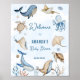 Cartel de bienvenida al Baby Shower acuarela Bajo el Mar Azul Niño. Artículos coincidentes disponibles.