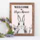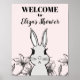Con un diseño floral elegante y una ilustración clásica de conejito, este letrero de bienvenida es perfecto para la celebración de su tema de conejito.