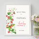 Cartel de Bienvenida para Baby Shower de Fresa en Acuarela. Artículos a juego disponibles.