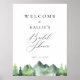 Póster Bienvenida al baby shower en bosque montañoso