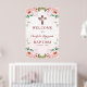 Poster De Bienvenida Del Bautismo Chica Floral Rosa. Rosas de acuarela chica poster de bautismo.