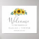 Este rústico poster de bienvenida boda de eucalipto de girasol es perfecto para una boda campestre. El diseño floral bohemio incluye girasoles amarillos, flores rosas y un eucalipto verde cazador en la acuarela con un elegante y moderno toque boho. Personalizar el poster con el nombre de la novia y el novio, y la fecha del boda.